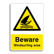 Beware Windsurfing Area Signs are designed to warn swimmers, paddlers, and other water users about zones where windsurfing is taking place, highlighting the potential dangers of fast-moving boards and limited maneuverability. The primary purpose of these signs is to prevent accidents and ensure the safety of all individuals by clearly marking areas where windsurfing activity may pose a risk to others. All our safety signs are compliant with BS EN ISO 7010 where applicable.