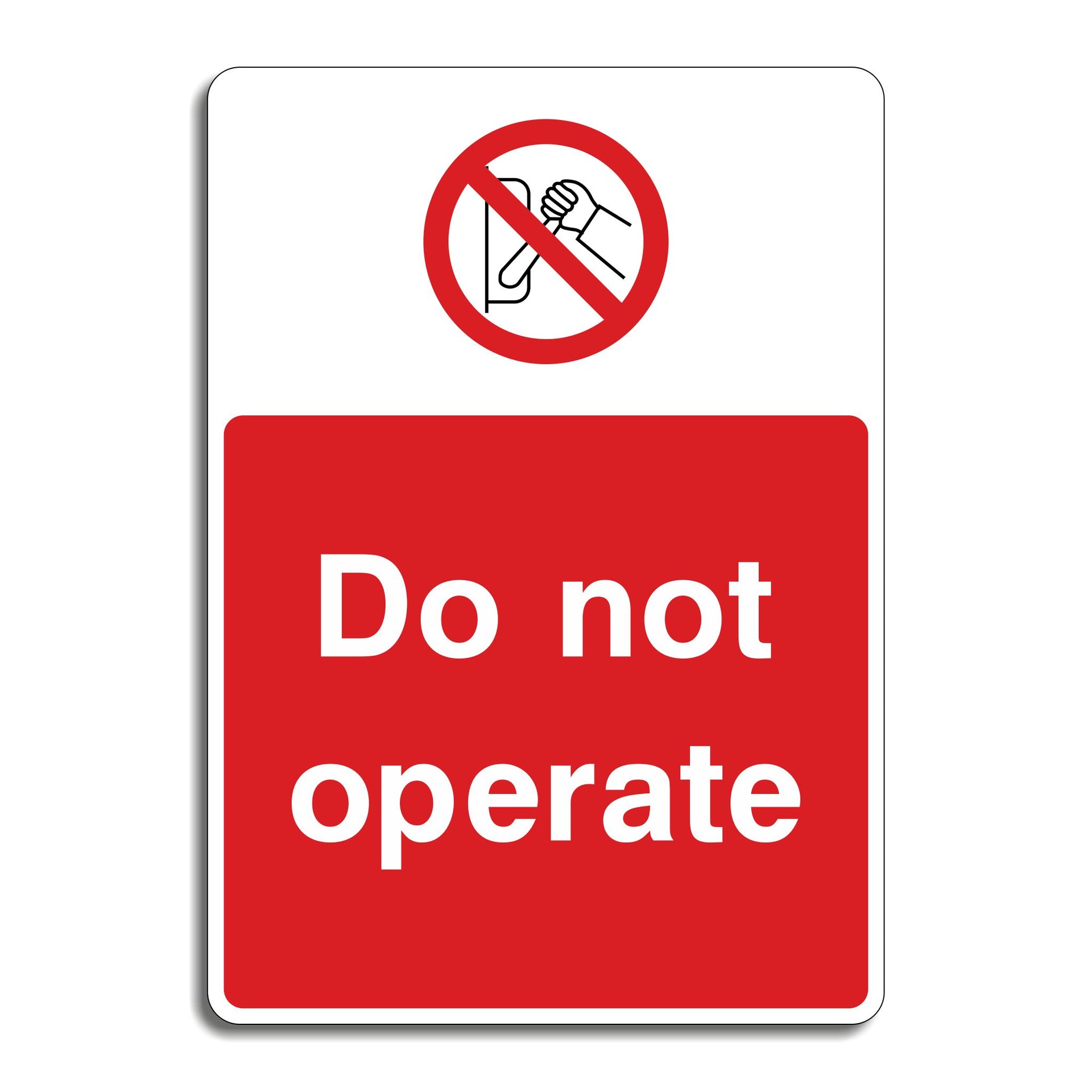 Do Not Operate Signs are clear safety warnings used to indicate that a piece of machinery, equipment, or system must not be used or started. These signs are typically placed on or near equipment that is unsafe, undergoing maintenance, or temporarily out of service. The sign warns workers not to operate equipment that may be faulty, under repair, or unsafe, helping to avoid potential harm. All our safety signs are compliant with BS EN ISO 7010 where applicable.