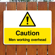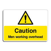 Men Working Overhead safety signs are to warn people below about potential dangers from above, helping to prevent accidents and injuries in areas where work is being done at height. This sign Warns people in the area to be cautious and aware of overhead activity, such as construction, maintenance, or installation work being carried out. All our safety signs are compliant with BS EN ISO 7010 where applicable.