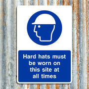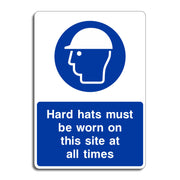This Hard Hats Must Be Worn on This Site Sign will help to ensure that your safety protocals are being followed on your construction site. This mandatory Personal Protective Equipment (PPE) sign is a vital addition to your site health and safety signage, specifically designed for construction and building sites in the UK.. All our safety signs are compliant with BS EN ISO 7010 where applicable.