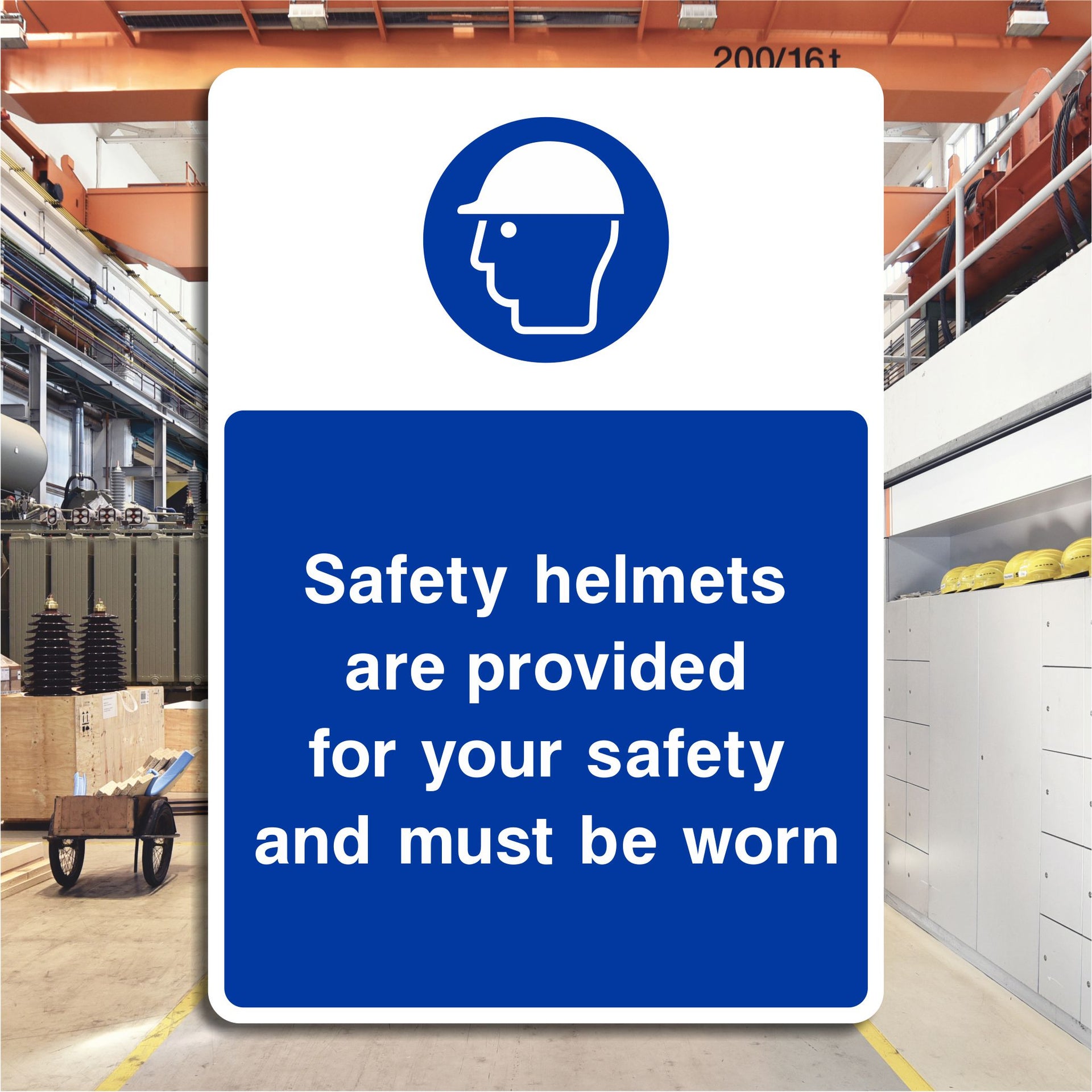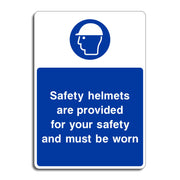 Safety Helmets Are Provided For Your Safety and Must Be Worn Signs serve a clear and important purpose in workplaces, particularly in construction sites, factories, warehouses, and other environments where there is a risk of head injury. All our safety signs are compliant with BS EN ISO 7010 where applicable.