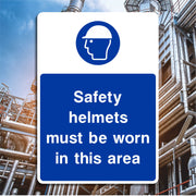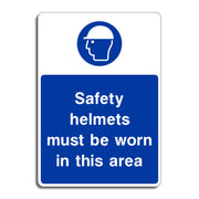 Safety Helmets Must Be Worn In This Area Signs is to ensure that individuals wear protective helmets (often referred to as hard hats) in areas where there is a risk of head injury due to falling objects, overhead hazards, or other potential accidents. These signs are typically placed in environments like construction sites, factories, warehouses, and areas where heavy machinery or hazardous materials are used. All our safety signs are compliant with BS EN ISO 7010 where applicable.
