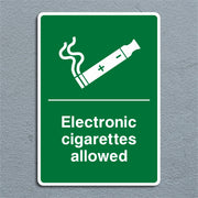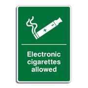 Electronic Cigarettes Allowed Signs are used to clearly indicate that the use of electronic cigarettes is permitted in the specified area. They inform users that while traditional smoking may be prohibited, vaping is allowed, helping to avoid confusion about the rules. The sign helps direct e-cigarette users to areas where their use is accepted, often separate from smoking or non-smoking zones. All our safety signs are compliant with BS EN ISO 7010 where applicable.