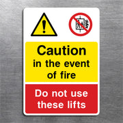 Caution In the Event of Fire Do Not Use These Lifts Sign