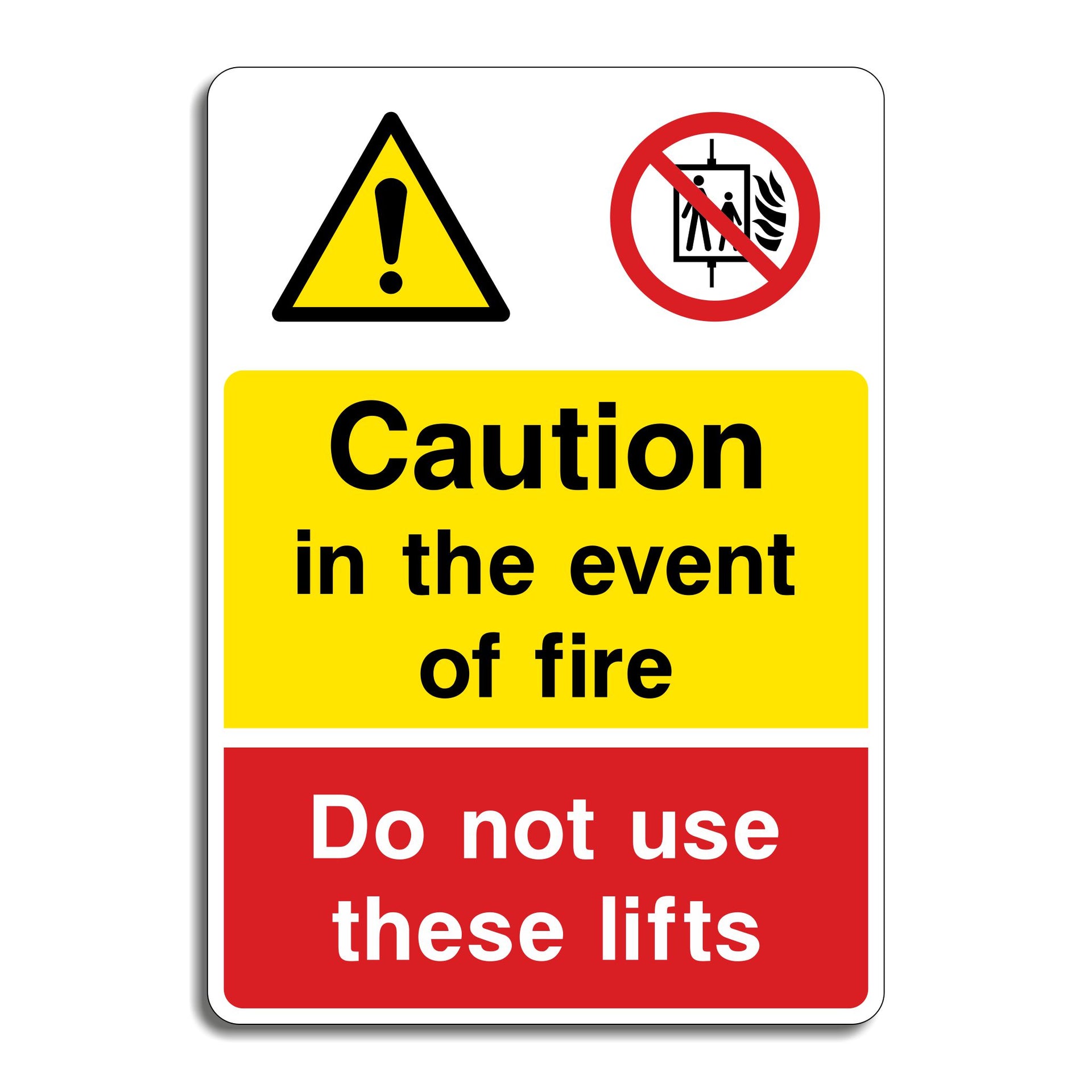 Caution In the Event of Fire, Do Not Use These Lifts Signs are used to warn individuals that lifts should not be used during a fire emergency. These signs are typically displayed near or on lifts in public buildings, office buildings, hospitals, and other facilities where lifts are in use. All our safety signs are compliant with BS EN ISO 7010 where applicable.