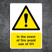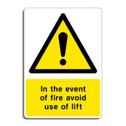 In the Event of Fire, Avoid Use of This Lift Signs are used to warn individuals that the lift should not be used during a fire emergency. This signage is crucial for ensuring safety during evacuation procedures and is typically displayed near or on lifts in public buildings, office spaces, hospitals, and other large facilities. All our safety signs are compliant with BS EN ISO 7010 where applicable.