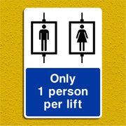 Only 1 Person Per Lift Signs are safety warnings commonly found on small freight or service lifts, wheelchair/platform lifts, or dumbwaiters. Their primary purpose is to prevent accidents, equipment damage, or overloading by restricting how the lift is used. All our safety signs are compliant with BS EN ISO 7010 where applicable.