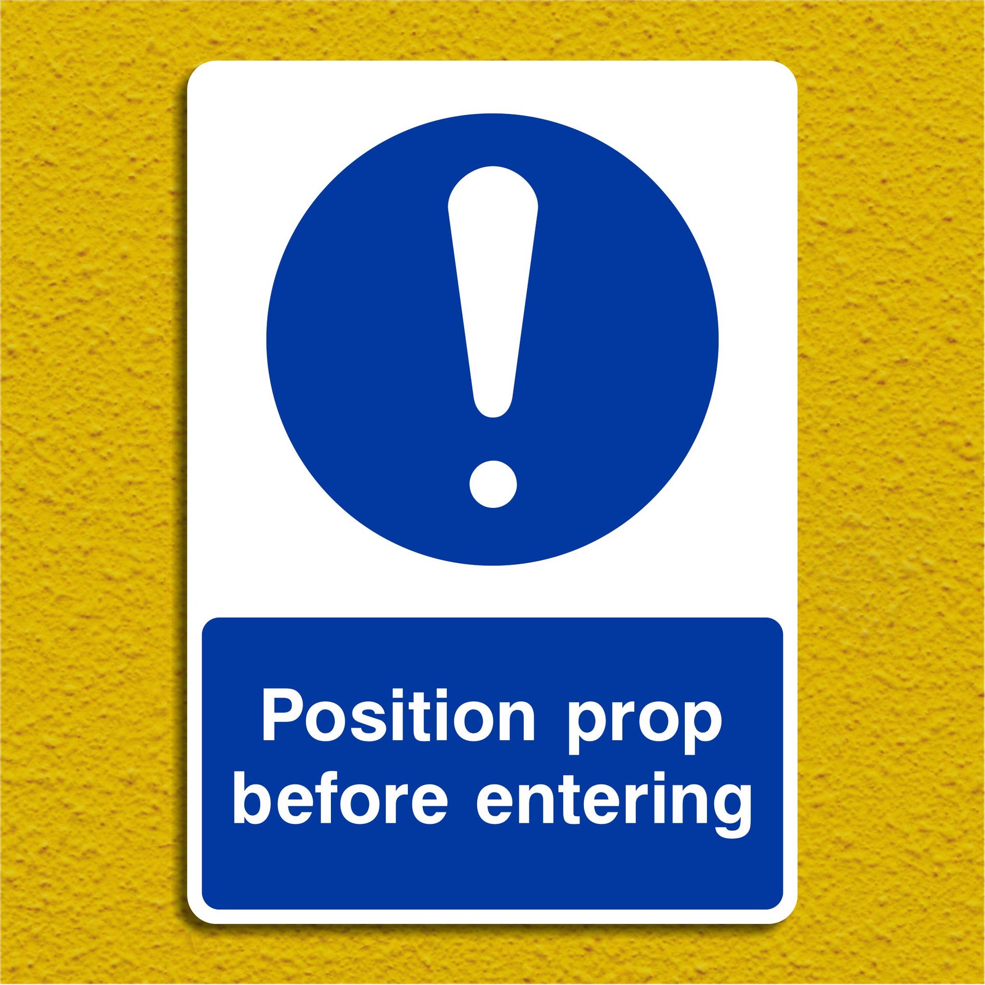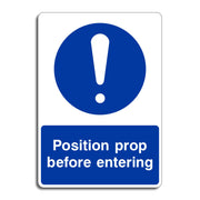 Position Prop Before Entering Signs are used to remind and instruct workers or individuals to secure a prop (or support structure) before entering a potentially hazardous area. These signs are commonly found in environments like construction sites, warehouses, or areas with heavy machinery, scaffolding, or other unstable structures that require additional support for safety. All our safety signs are compliant with BS EN ISO 7010 where applicable.