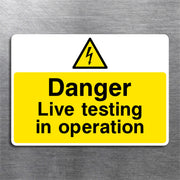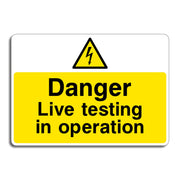 Danger Live Testing in Operation Signs are critical safety warnings used to alert personnel and bystanders that live testing of electrical or mechanical systems is currently underway. These signs are especially important in environments where systems are energized or active, posing serious risks such as electric shock, moving machinery, or other hazardous conditions. All our safety signs are compliant with BS EN ISO 7010 where applicable.