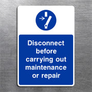 Disconnect Before Carrying Out Maintenance or Repair Sign