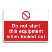 Do Not Start This Equipment When Locked Out Signs are a critical safety notice used to prevent the accidental or unauthorized activation of machinery or equipment that has been locked out for maintenance, repair, or servicing. Its primary purpose is to clearly communicate that the equipment is isolated and cannot be operated until the lockout procedure is safely and properly removed. All our safety signs are compliant with BS EN ISO 7010 where applicable.