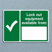 Lock Out Equipment Available From: Signs are used in workplaces to inform employees where they can access lockout/tagout (LOTO) devices needed to safely isolate machinery or equipment during maintenance, repair, or servicing. All our safety signs are compliant with BS EN ISO 7010 where applicable.