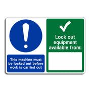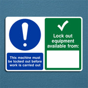 This Machine Must Be Locked Out Before Work Is Carried Out Signs serve as critical safety reminders in industrial and maintenance environments. They combine a mandatory safety instruction with practical guidance on where to find the necessary lockout/tagout (LOTO) equipment. They inform where lock out equipment for this particular machine is located. All our safety signs are compliant with BS EN ISO 7010 where applicable.