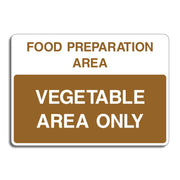 Food Preparation Area Vegetable Area Only Signs are used in commercial kitchens, food production facilities, and catering environments to designate specific zones exclusively for preparing vegetables. Vegetables, especially those eaten raw, are at risk of contamination if prepared near raw meat, poultry, or seafood. These signs help ensure that only vegetables are handled in the area, reducing the risk of foodborne illness. All our safety signs are compliant with BS EN ISO 7010 where applicable.