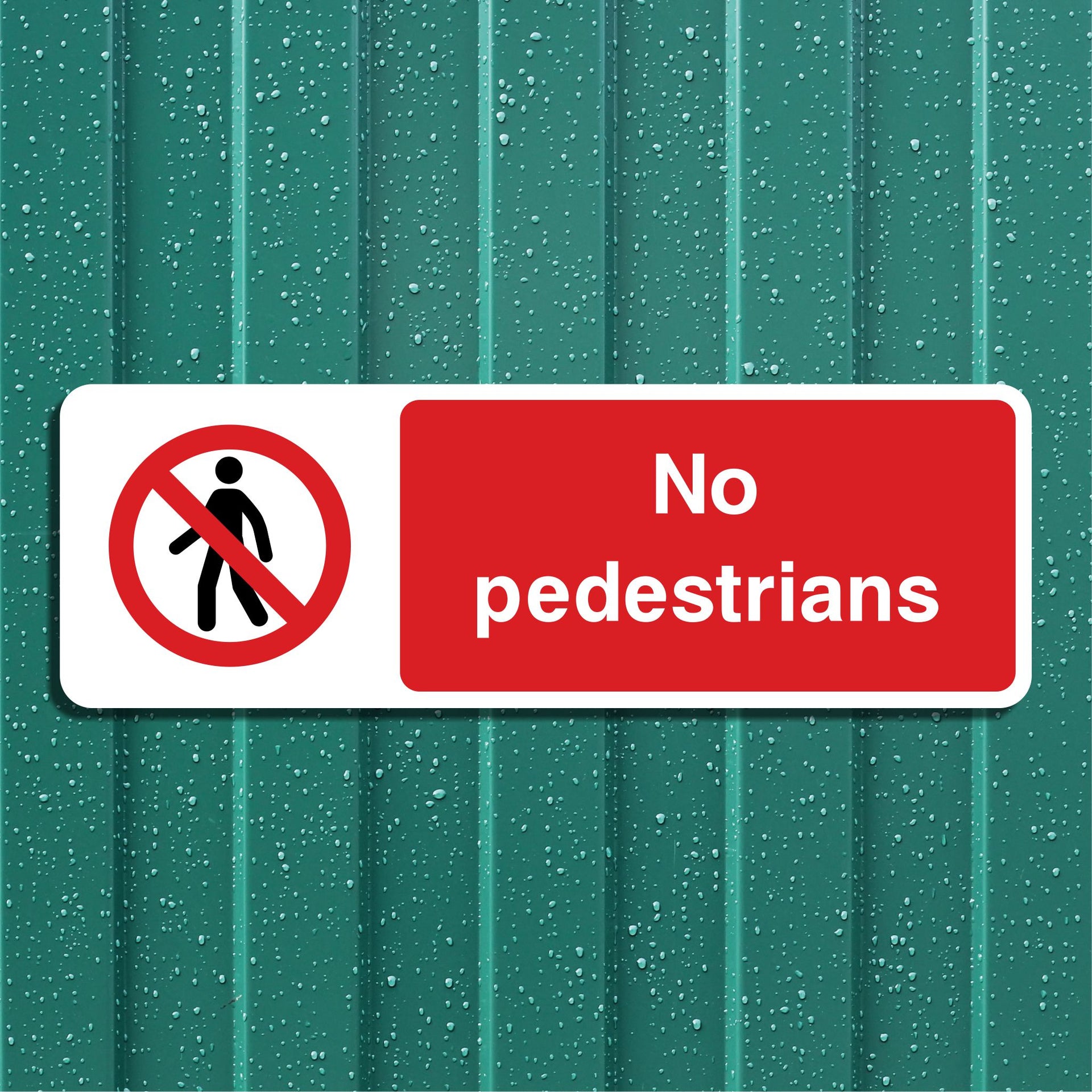 No Pedestrians Signs are used to prohibit foot traffic in specific areas where walking is unsafe or not allowed. These signs help prevent accidents in areas with moving vehicles, machinery, or other hazards not safe for pedestrians, such as loading docks, construction zones, or high-traffic roadways. They restrict access to zones designated for vehicles or equipment use only, helping maintain efficient and safe operations. All our safety signs are compliant with BS EN ISO 7010 where applicable.