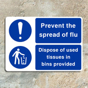 Prevent the Spread of Flu Dispose of Used Tissues in Bins Provided Sign