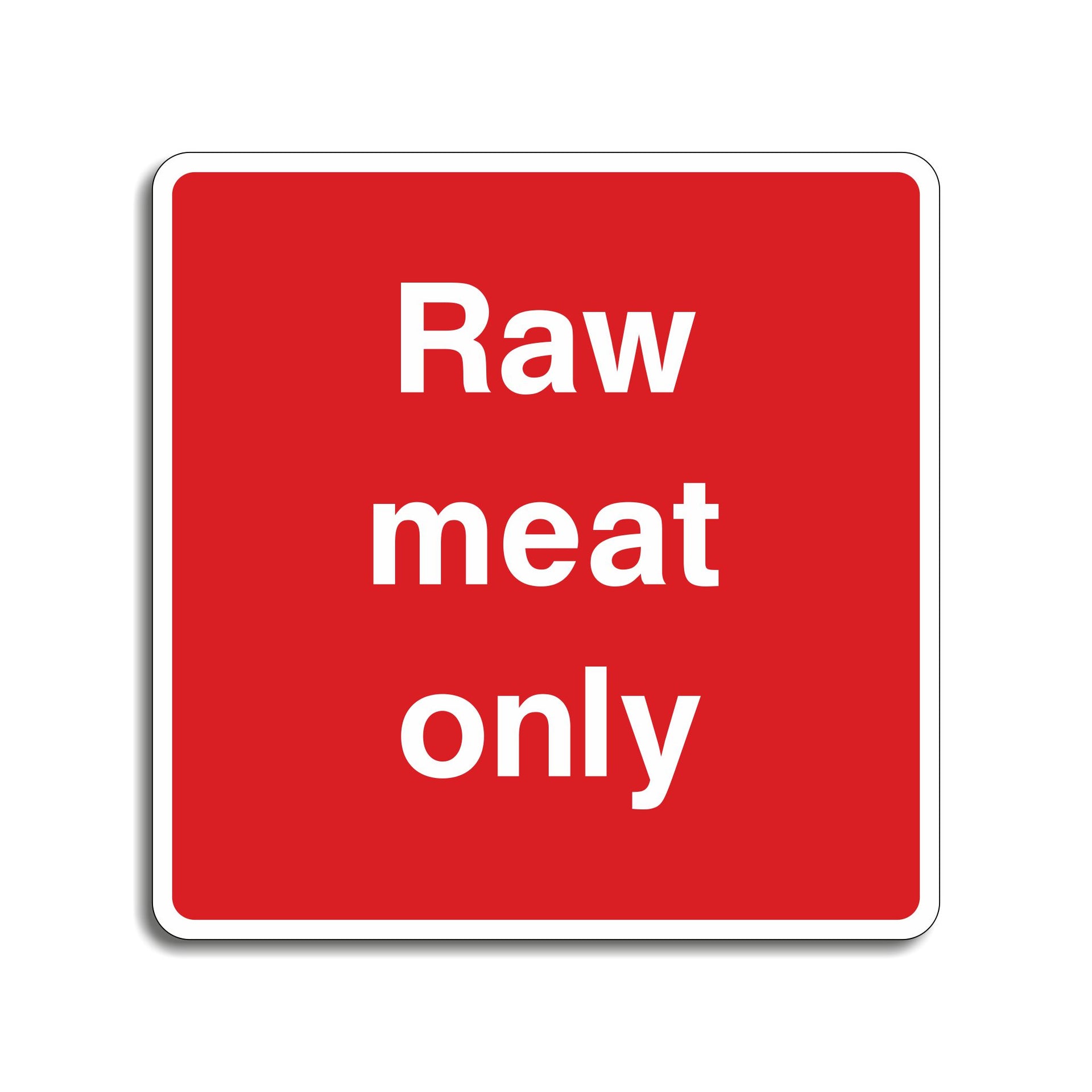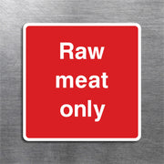 Raw Meat Only Signs are specialized signs used primarily in food handling environments, such as restaurants, grocery stores, butcher shops, supermarkets, and commercial kitchens. These signs serve to indicate specific areas or storage sections where raw meat should be stored, handled, or prepared. The purpose of these signs is to ensure safety, prevent contamination, and maintain proper food safety standards in food preparation and handling areas. All our safety signs are compliant with BS EN ISO 7010 where applicable.