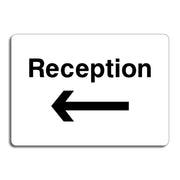 Reception Signs with a Left Pointing Arrow are directional signs used to guide visitors or customers to the reception area of a building, facility, or office. These signs typically feature an arrow pointing to the left, indicating the direction to the reception desk or lobby where guests can check in or obtain information. Reception Right Arrow Signs are commonly found in business offices, hotels, hospitals, conference centers, and public buildings. All our safety signs are compliant with BS EN ISO 7010 where applicable.