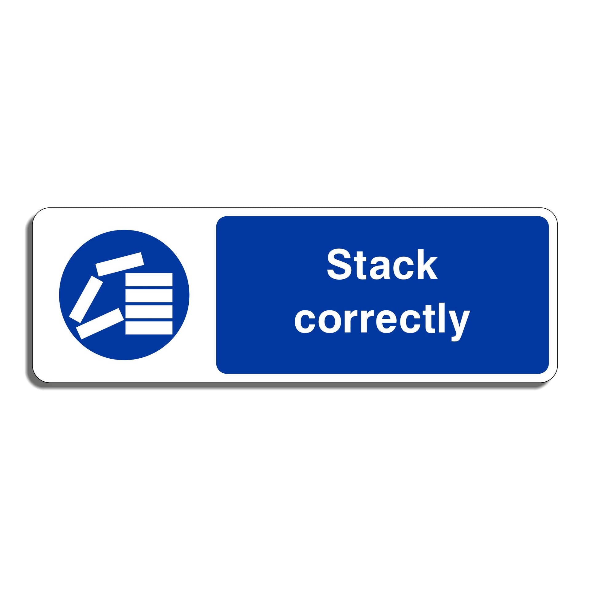 Stack Correctly Signs are workplace safety signs used to instruct employees and material handlers to stack items in a safe, stable, and organized manner. These signs help prevent accidents, injuries, and damage caused by improper stacking of goods, materials, or equipment. All our safety signs are compliant with BS EN ISO 7010 where applicable.