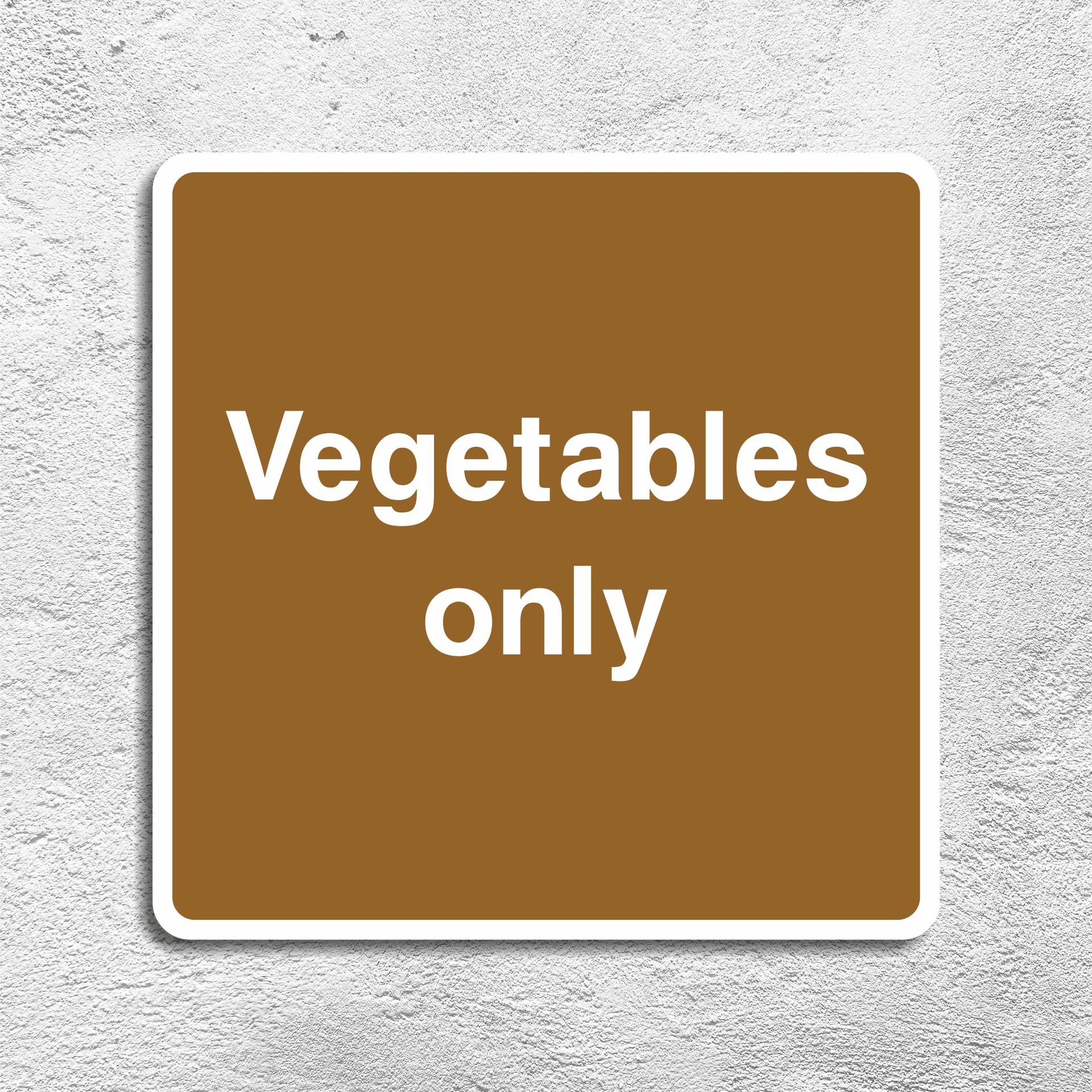 Vegetables Only Signs are signs used in food preparation and handling areas, such as kitchens and restaurants, to designate specific areas or equipment that are intended solely for the handling, storage, or preparation of vegetables. These signs help ensure that vegetables are separated from other types of food, particularly raw meats, to maintain food safety and prevent cross-contamination. All our safety signs are compliant with BS EN ISO 7010 where applicable.