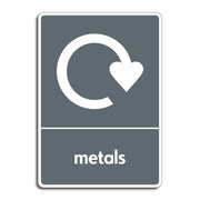 Metals Recycling Signs are designed to indicate designated areas or bins for the disposal of recyclable metal items, including aluminium, steel, and other scrap metals commonly found in household or commercial waste. These signs play a crucial role in promoting proper waste sorting by helping individuals identify recyclable metals and encouraging their diversion from landfills. All our safety signs are compliant with BS EN ISO 7010 where applicable.