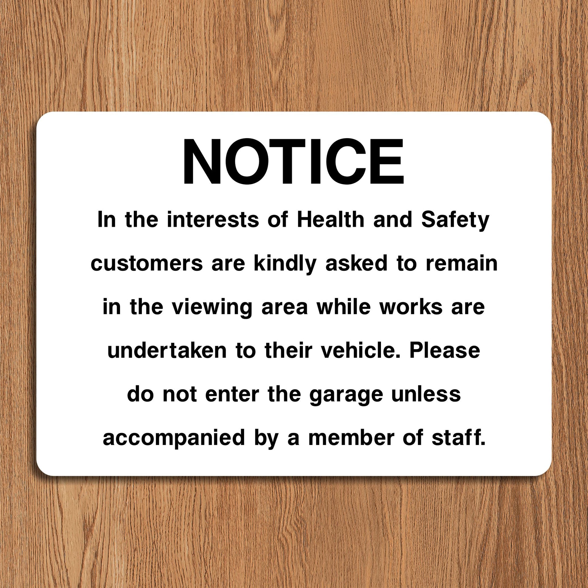 Notice Do Not Enter Garage Signs are used to provide a clear and authoritative warning that entry into the garage area is restricted or prohibited, helping to protect both personnel and property. The sign informs unauthorized personnel, visitors, or the public that they are not permitted to enter the garage. This helps to maintain control over who accesses potentially dangerous areas, protects sensitive equipment or vehicles and can help to prevent theft or vandalism. All our safety signs are compliant with BS EN ISO 7010 where applicable.