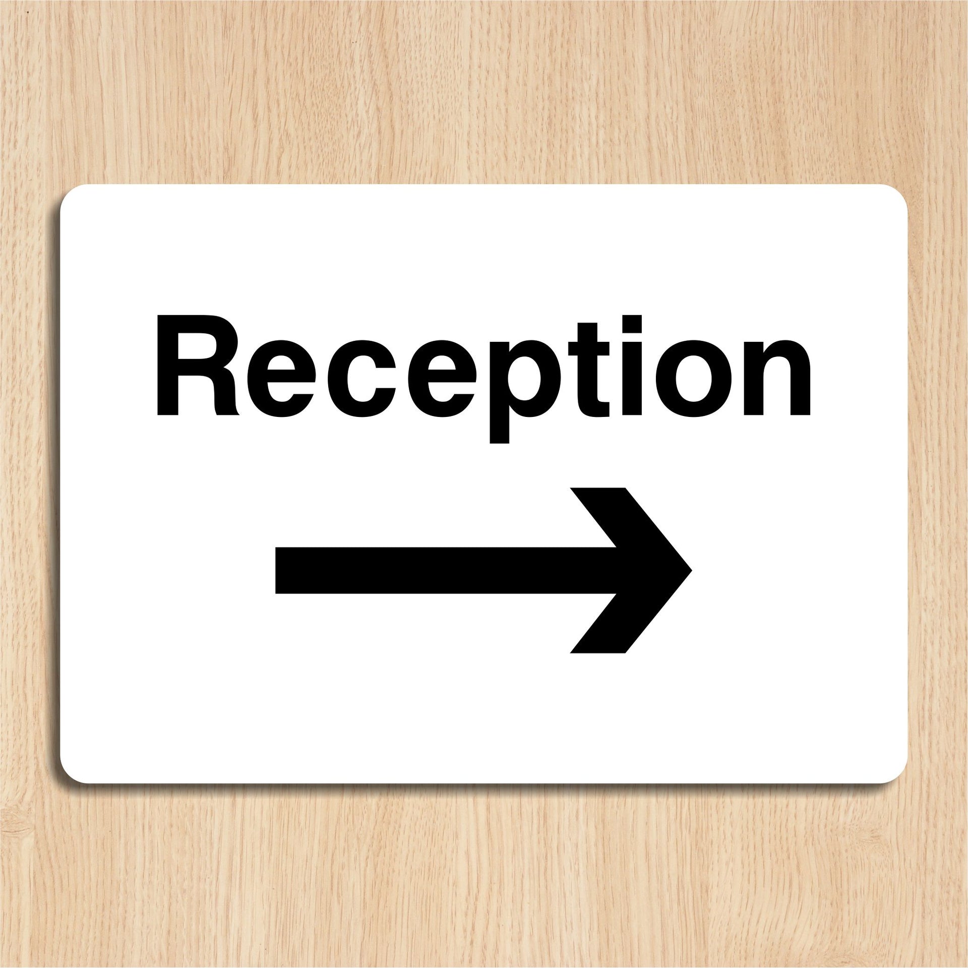 Reception Signs with a Right Pointing Arrow are directional signs used to guide visitors or customers to the reception area of a building, facility, or office. These signs typically feature an arrow pointing to the right, indicating the direction to the reception desk or lobby where guests can check in or obtain information. Reception Right Arrow Signs are commonly found in business offices, hotels, hospitals, conference centers, and public buildings. All our safety signs are compliant with BS EN ISO 7010 where applicable.