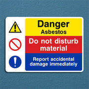 Danger Asbestos Do Not Disturb Material Report Accidental Damage Immediately Sign