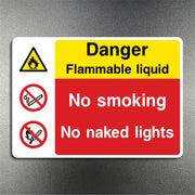 Danger Flammable Liquid No Smoking No Naked Lights Sign