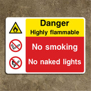 Danger Highly Flammable No Smoking No Naked Lights Sign