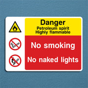 Danger Petroleum Spirit Highly Flammable No Smoking No Naked Lights Sign