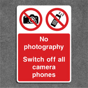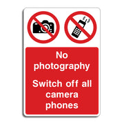 No Photography Switch Off All Camera Phones Signs is to prohibit the use of any photographic devices, especially camera-equipped mobile phones, in a specific area. These signs serve to protect sensitive or confidential information from being recorded or shared and maintain privacy for individuals in environments like healthcare facilities, schools, or workplaces. All our safety signs are compliant with BS EN ISO 7010 where applicable.
