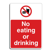 No Eating or Drinking Signs are used to clearly indicate that consumption of food or beverages is not permitted in a specific area. These signs help prevents spills, crumbs, and litter that can attract pests or create unsanitary conditions, especially in shared or sterile environments. In areas like laboratories, manufacturing zones, or server rooms, food and drinks can damage equipment or contaminate materials. All our safety signs are compliant with BS EN ISO 7010 where applicable.
