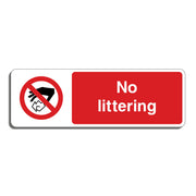 No Littering Signs are used to discourage people from discarding waste improperly in public or private spaces. They encourage people to dispose of litter in bins, helping to keep streets, parks, and other areas clean and attractive. Litter can harm wildlife, pollute water sources, and damage natural habitats. These signs remind the public to act responsibly. All our safety signs are compliant with BS EN ISO 7010 where applicable.