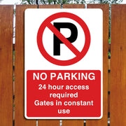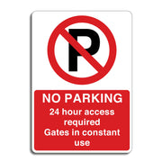 No Parking 24 Hour Access Required Gates In Constant Use Sign