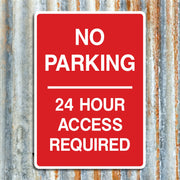 No Parking 24 Hour Access Required Signs are used to indicate that a specific area must be kept clear of parked vehicles at all times to ensure uninterrupted access. They make it clear that access is needed around the clock, often for emergency vehicles, deliveries, or operational needs such as entrances, gates, or loading bays. These signs help prevent vehicles from blocking critical access points that must remain open at all hours, including fire exits, driveways, or service roads. All our safety signs are compliant with BS EN ISO 7010 where applicable.