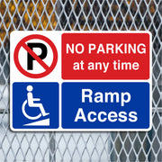 No Parking At Any Time Ramp Access Sign are used to ensure that areas providing ramp access remain clear and accessible at all times. These signs are essential for preventing vehicles from blocking ramps used by individuals with disabilities, parents with prams, or anyone needing a smooth, sloped entryway. All our safety signs are compliant with BS EN ISO 7010 where applicable.