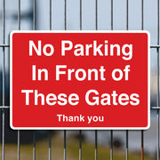 No Parking In Front Of These Gates Thank You Sign