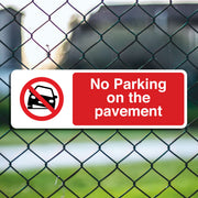 No Parking On The Pavement Signs are installed to prevent vehicles from obstructing pedestrian pathways by parking on pavements or footpaths. These signs help ensure safe and accessible walkways for all pedestrians, including those with disabilities, parents with push chairs, and elderly individuals. All our safety signs are compliant with BS EN ISO 7010 where applicable.
