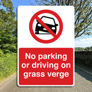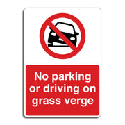 No Parking or Driving On Grass Verge Signs are designed to prevent vehicles from both parking and driving on the grassy strips between roads and pavements. These verges are not built to support the weight or movement of vehicles, and such use can lead to soil compaction, turf damage, erosion, and costly landscape repairs. All our safety signs are compliant with BS EN ISO 7010 where applicable.