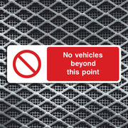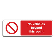 No Vehicles Beyond This Point Signs are used to prohibit all motorized vehicles from passing a designated boundary. They mark areas intended only for foot traffic, reducing the risk of accidents between vehicles and pedestrians. These signs help safeguard environments like parks, walkways, school zones, or maintenance zones that are not designed for vehicle access. All our safety signs are compliant with BS EN ISO 7010 where applicable.