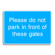 Please Do Not Park In Front of These Gates Signs are used to prevent vehicles from blocking gates, driveways, or entrances in various environments, such as residential areas, businesses, warehouses, or industrial sites. These signs help ensure that gates remain clear and accessible at all times, allowing vehicles, deliveries, or emergency services to enter and exit without obstruction. All our safety signs are compliant with BS EN ISO 7010 where applicable.