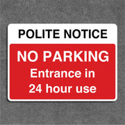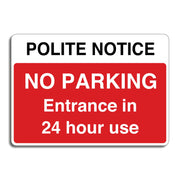 Polite Notice No Parking Entrance In 24 Hour Use Sign