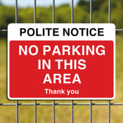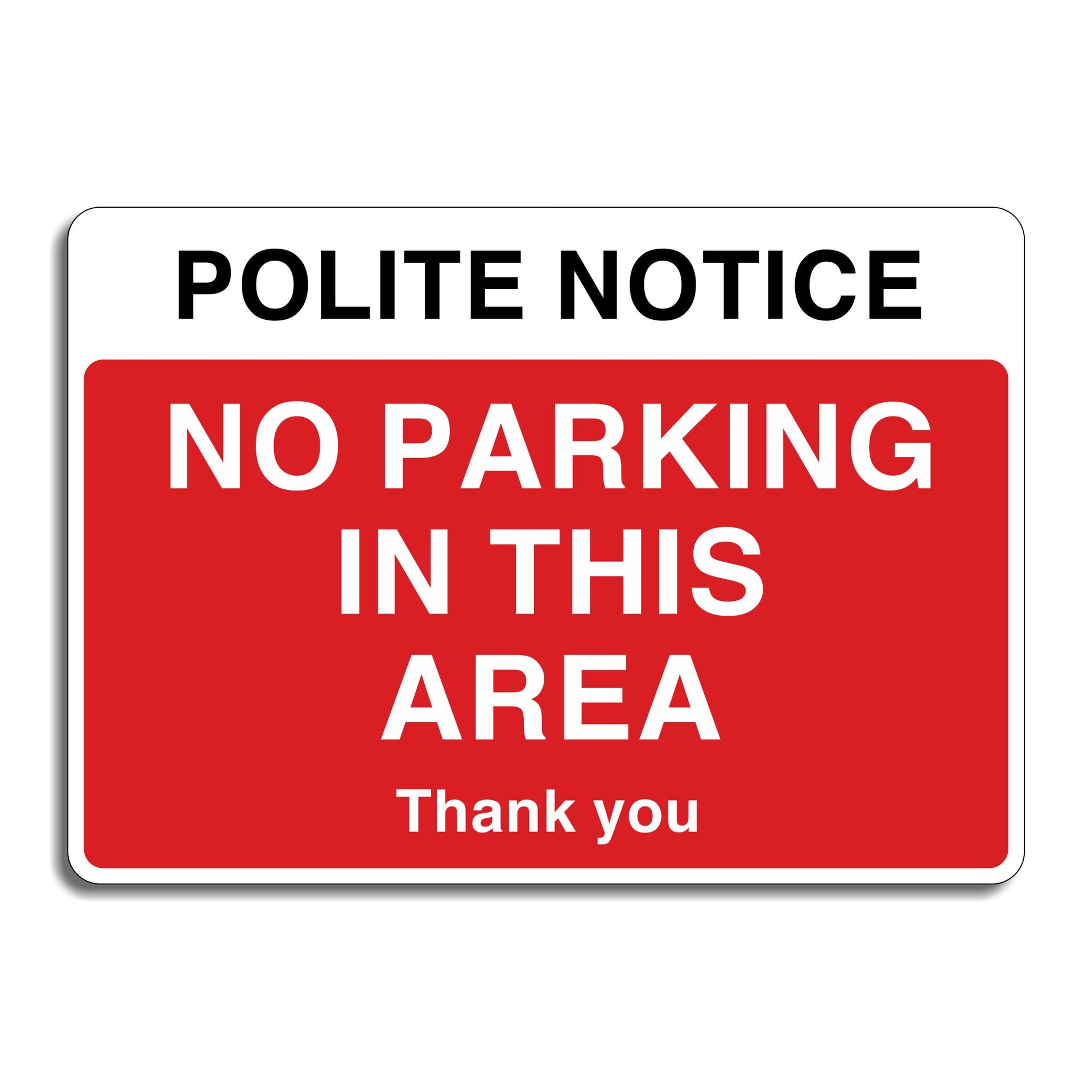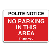Polite Notice No Parking In This Area Thank You Signs are used to respectfully request that drivers refrain from parking in a specific location, often on private property or in areas where formal enforcement may be limited. These signs aim to prevent obstruction, maintain access, or preserve the use of a space without resorting to harsh language or legal warnings. All our safety signs are compliant with BS EN ISO 7010 where applicable.