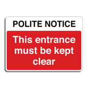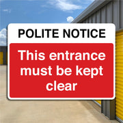 Polite Notice This Entrance Must Be Kept Clear Sign