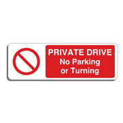 Private Drive No Parking Or Turning Signs are used to clearly inform drivers that the drive is private property and must not be used for parking or turning around. These signs help prevent unauthorized vehicles from blocking access, causing inconvenience, or damaging the drive. All our safety signs are compliant with BS EN ISO 7010 where applicable.