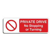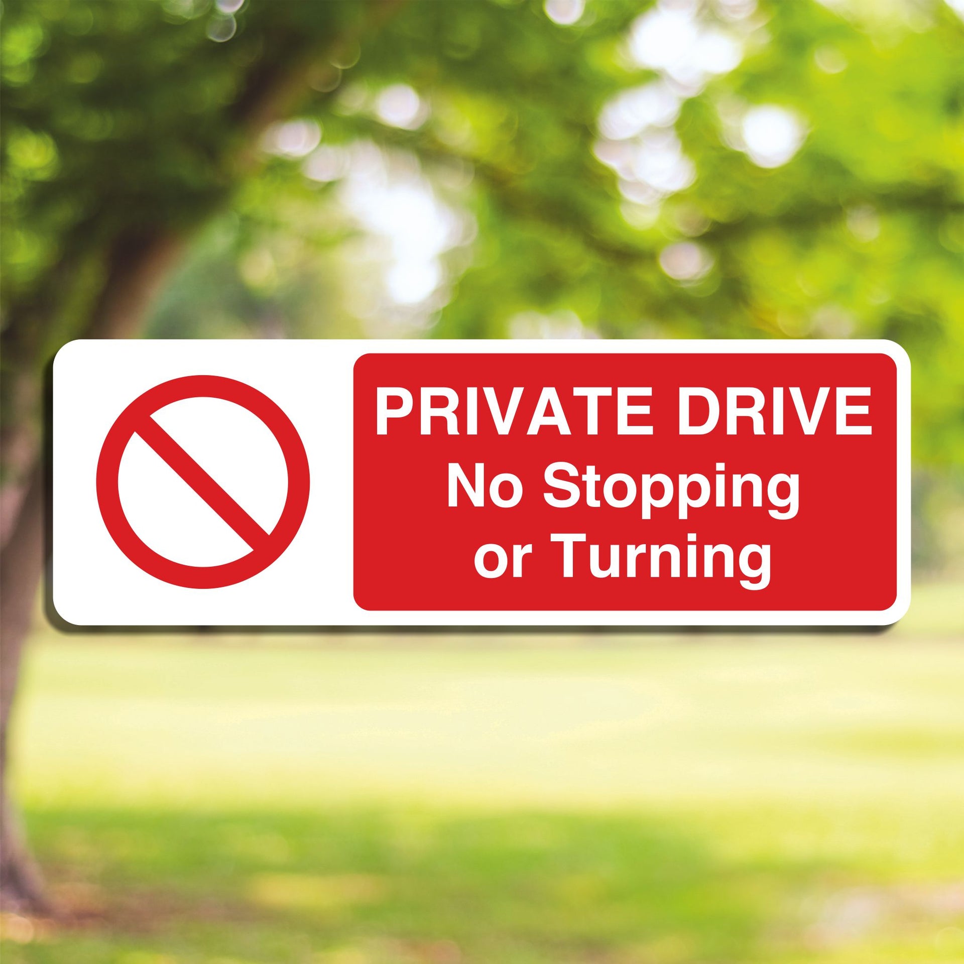 Private Drive No Stopping Or Turning Signs are used to clearly indicate that vehicles are not permitted to stop or turn around in the designated private drive. These signs help prevent unauthorized use that could block access, cause inconvenience to residents, or result in unnecessary wear and tear on the property. All our safety signs are compliant with BS EN ISO 7010 where applicable.