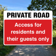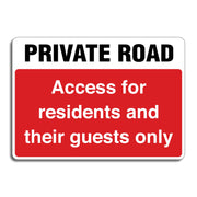 Private Road Access For Residents And Their Guests Only Signs are used to restrict entry to a private road exclusively to residents and their invited visitors, helping to maintain privacy, security, and control over traffic flow within the area. These signs deter unauthorized vehicles from using the road as a shortcut or parking spot, reducing congestion and potential disturbances. All our safety signs are compliant with BS EN ISO 7010 where applicable.