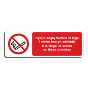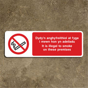 Dydy'n Anghyfreithiol At Fyga L Mewn Hon Yn Adeiladu It Is Illegal To Smoke On These Premises Sign