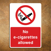 No E-Cigarettes Allowed Signs are used to clearly communicate that the use of electronic cigarettes is prohibited in the specified area. They specifically target e-cigarette use, ensuring that people understand vaping is not permitted, even if traditional smoking isn’t mentioned. Vapor from e-cigarettes can contain nicotine and other chemicals. These signs help maintain clean, breathable air for all occupants. All our safety signs are compliant with BS EN ISO 7010 where applicable.